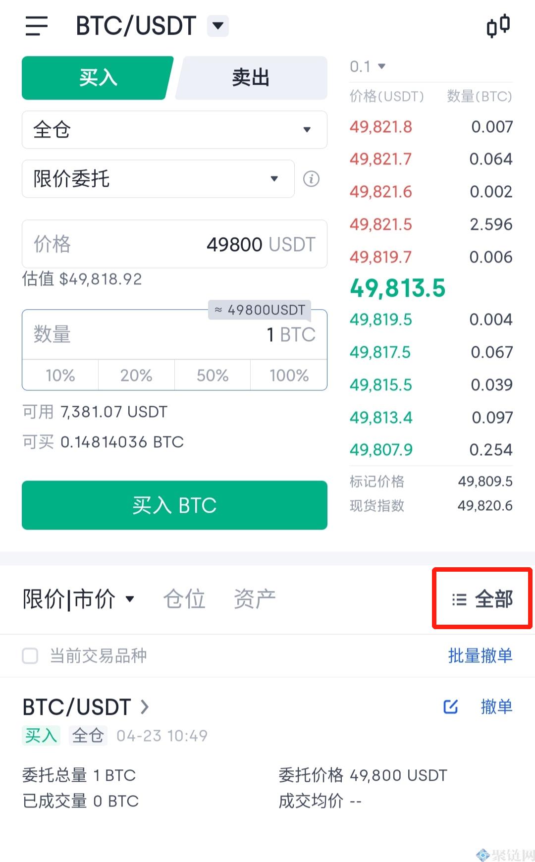 3.进入货币交易页面后,选择购买方式,输入购买价格和数量,点击购买BTC可以。购买方式通常是限价委托,可以设定理想的购买价格。在订单成功之前,您可以随时查看委托订单信息并撤回订单。