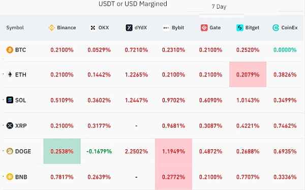 请注意,大多数代币的每周资金费率在 0.2% 至 0.4% 之间波动,这表明多头对杠杆的需求略高。 然而,在看涨时期,这一指标很容易超过 4.3%,而目前期货未平仓合约排名前七的代币中的任何一个都没有出现这种情况。