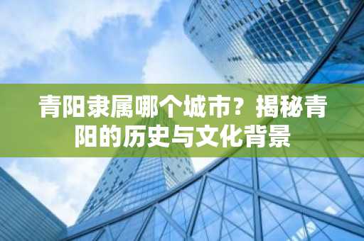 青阳隶属哪个城市?揭秘青阳的历史与文化背景