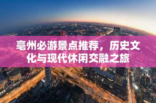 亳州,这座位于安徽省西北部的历史文化名城,不仅有着丰富的文化遗产,还融合了现代休闲元素,成为游客向往的旅游胜地,以下是一些亳州值得一游的地方,带你领略这座城市的魅力。