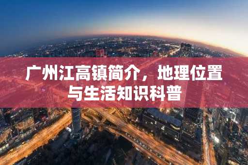 广州江高镇,位于中国广东省广州市白云区,是广州市的一个镇级行政单位,江高镇地处广州市北部,东临增城区,南接广州市区,西邻从化区,北靠花都区,是广州市重要的北部副中心之一。