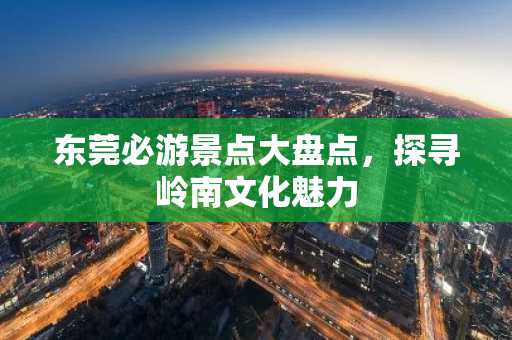 东莞,位于广东省中南部,是著名的制造业基地,同时也是岭南文化的重要发源地之一,这里不仅经济繁荣,而且拥有丰富的旅游资源,以下是一些东莞必游的景点,带你领略这座城市的魅力。